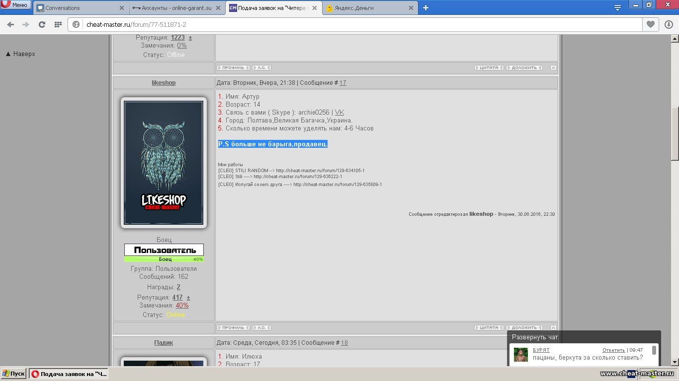 Всем привет я вступил не давно в читеры надеюсь со всеми по дружусь