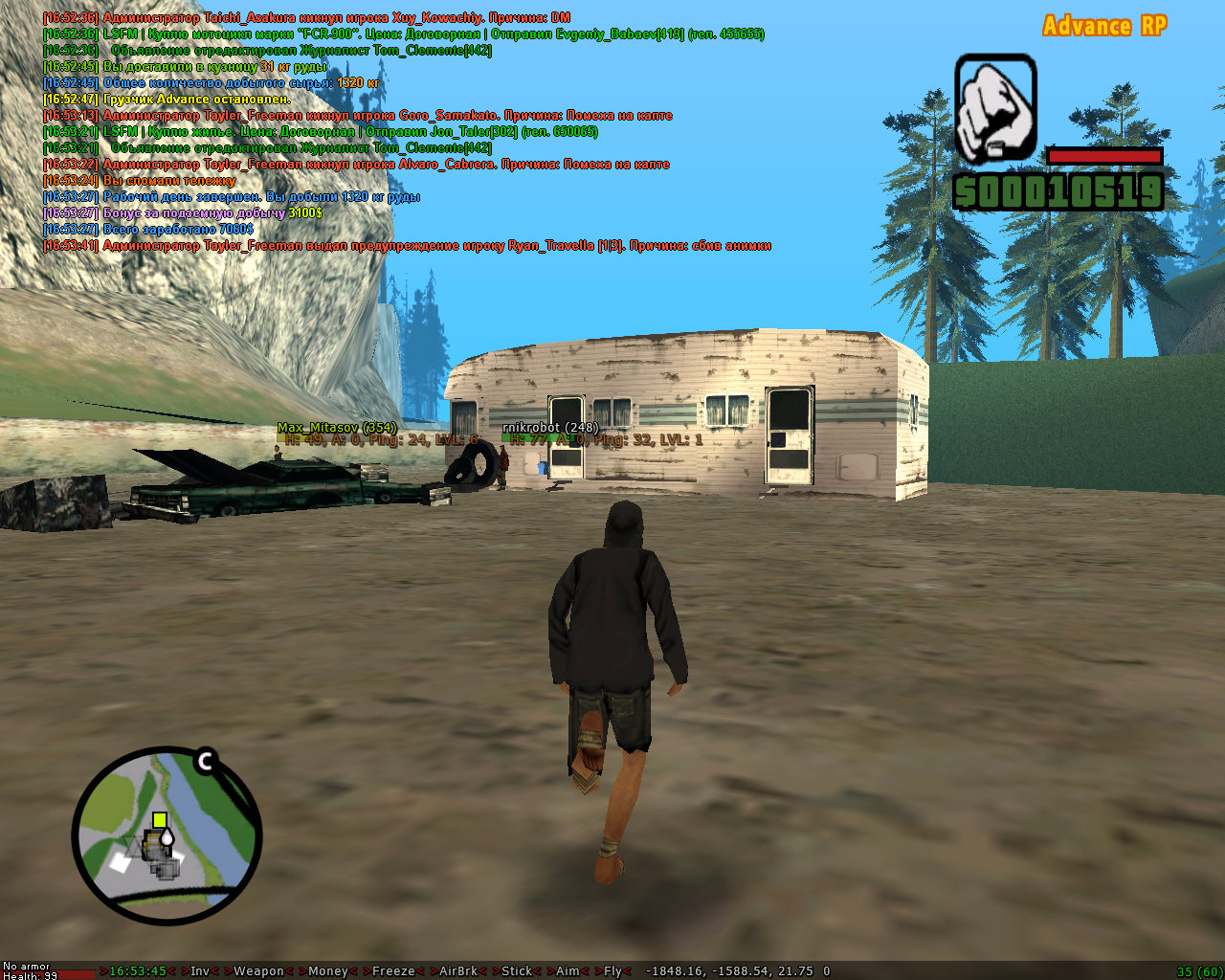 Включаем бот и Ноп перед маркером, сдаём одну тележку, включаем невидимку,сдаем ещё одну тележку и прыгаем вперед на самый маркер.Когда насобираем 600КГ сдаем и опять повторяем действия