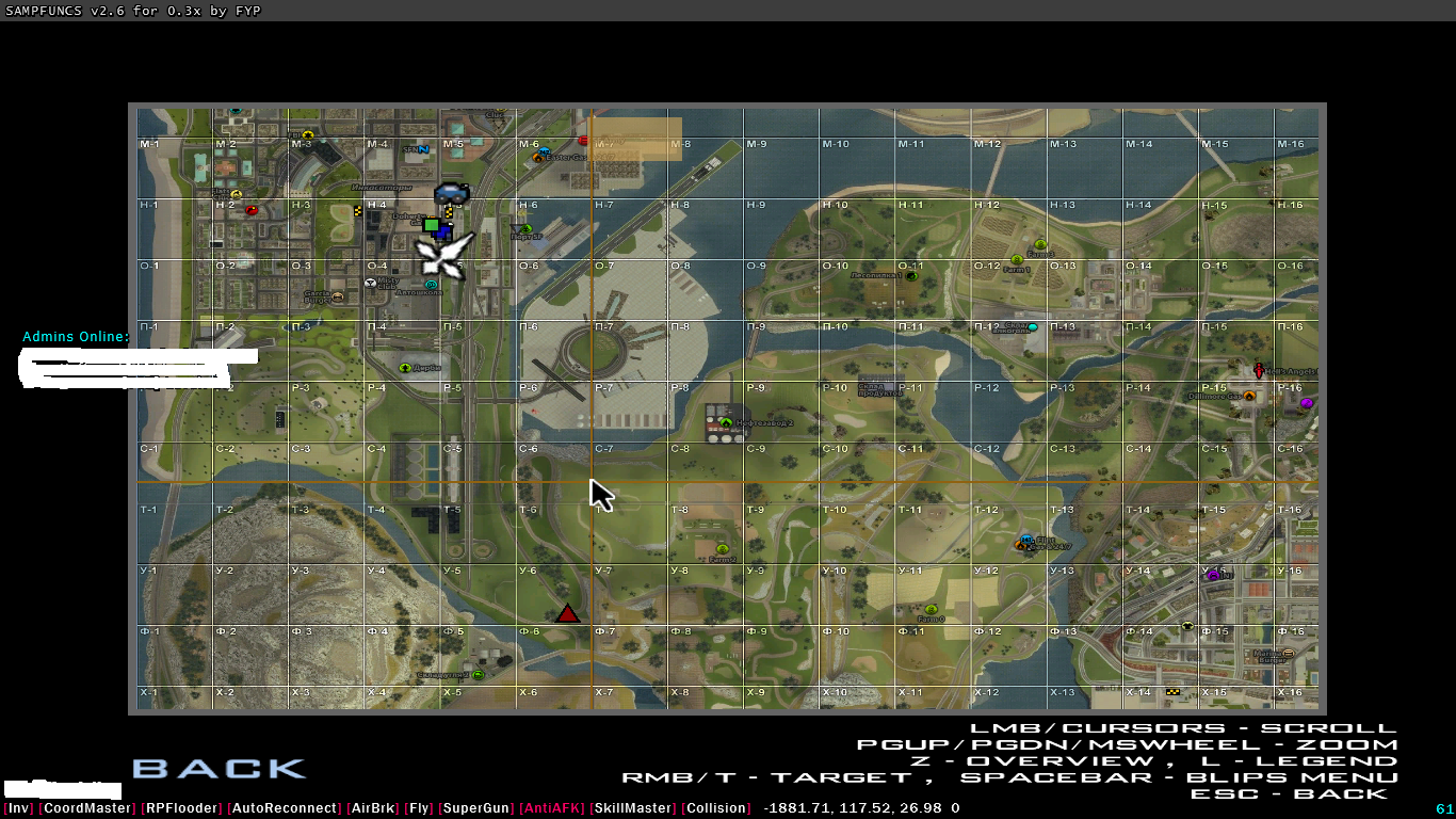 Нам понадобится NOP Disable Onfoot data Freecam.cs cкачать можно тут: http://cheat-master.ru/forum/129-94294-1 Вот как всё будет выглядеть Инструкция Делаем всё как в 1ом варианте только вместо переключения в карту, мы врубаем Freecam то есть вводим CAM ( не в чат ) и следим за нашей жертвой без всякого напряга. Дополнение: 1. Если долго стоять с включенным NOP Disable Onfoot data вас кикнет за АФК 2. Не забудьте отключить NOP Disable Onfoot data после, иначе дальше с места активации у вас ничего не будет синхронизироваться. 3. С включенным NOP Disable Onfoot data у вас по всей карте будут синхронизироватся только те игроки которые были в зоне прорисовки на мини-карте во время включения NOP Disable Onfoot data 4. Новые игроки вошедшие в вашу зону прорисовки в то время когда у вас включен NOP Disable Onfoot data не будут синхронизироватся, то есть вы не будете их видеть.