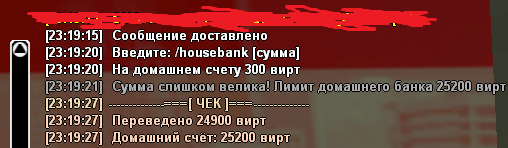 2. После того как прибыли в банк, кладем на домашний счет максимально допустимую сумму командой /housebank [сумма]. В моем случае [C] — 25200 тыс.