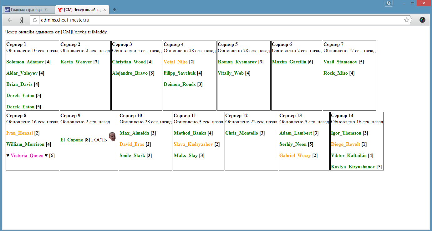 [Samp-rp] Чекер админов онлайн v 1.4 (ВКЛЮЧЕН С 08.01.2014)