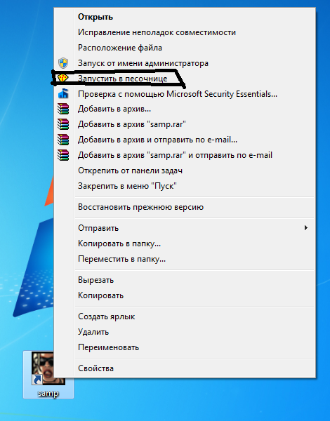 2) Если у вас есть на основе дом , то продаем дом твинку за столько денег сколько у него есть . и все деньги у вас только потом с твинка на основу продаете дом за 1вирт . Ну тут будет нужна песочница или друг. чтобы продавать дома. Если у вас нет друга которому можно это доверить качайте песочницу - http://rghost.ru/39783342 Как её использовать ? напишу краткое описание! качаем , устнавливаем , запускаем - сворачиваем . смотрим вот у нас ярлык самп на рабочем столе (например) кликаем на него правой кнопкой мыши , и видим следущее : После нажатие "запустить в песочнице" у нас будет подверждение запуска нажимает "ок" ВСЁ!