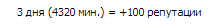 Пришло 100 репы, это система немного лагает, дает не за 3 дня, а за 2