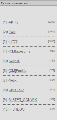 Astorma, Marcelo, из-за чего такие мысли?  Добавлено (09.01.2012, 09:25) --------------------------------------------- Astorma, норм юзербарка. счетчик постов в курилке отключили