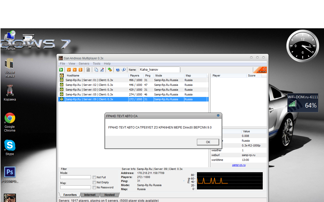 Может у кого были проблемы когда пытаешься зайти на сервер но выскакиваем такая вот херня(Обычно ошибка появляется после переустановки виндовс )