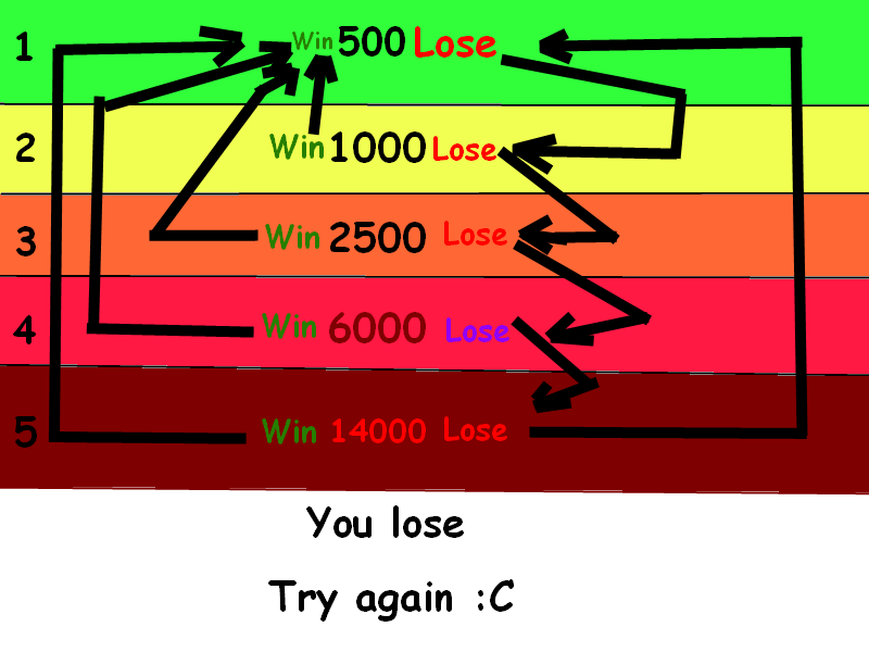 Если вы выиграли ставку, то переноситесь на 1 ставку, то есть 500 вирт