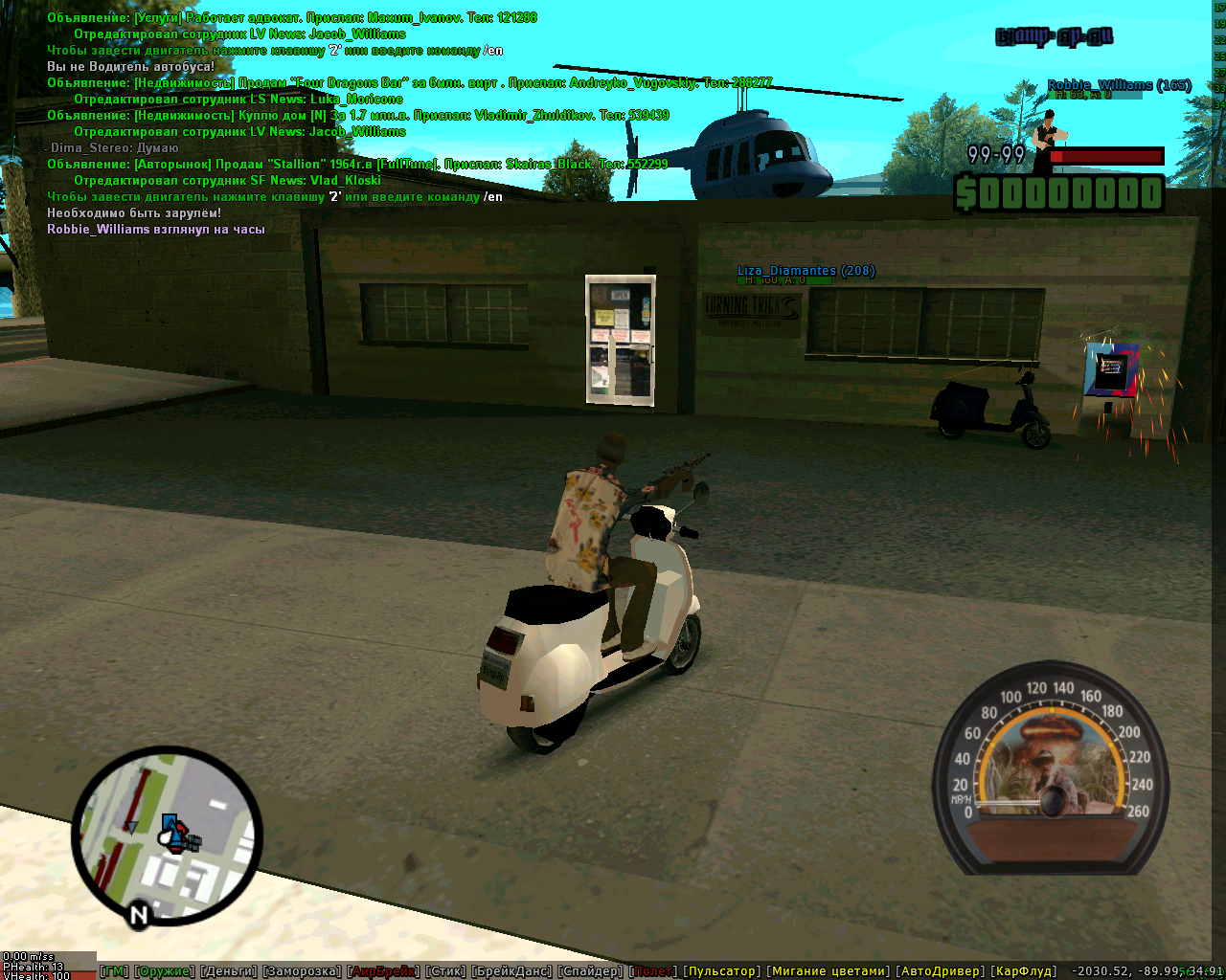 для этого нужно! 1) собейт((любой)) 2) мопед можно украсть у бича =) Начнем! 1)Заходим на сервак 2)Оружие >>> Включить чит на оружие>>MP5((ган не достаем!)) 3)Мутим мопед можно украсть у бича при нажатие 9 4)Все мы на мопеде со стволом Kill кого хош