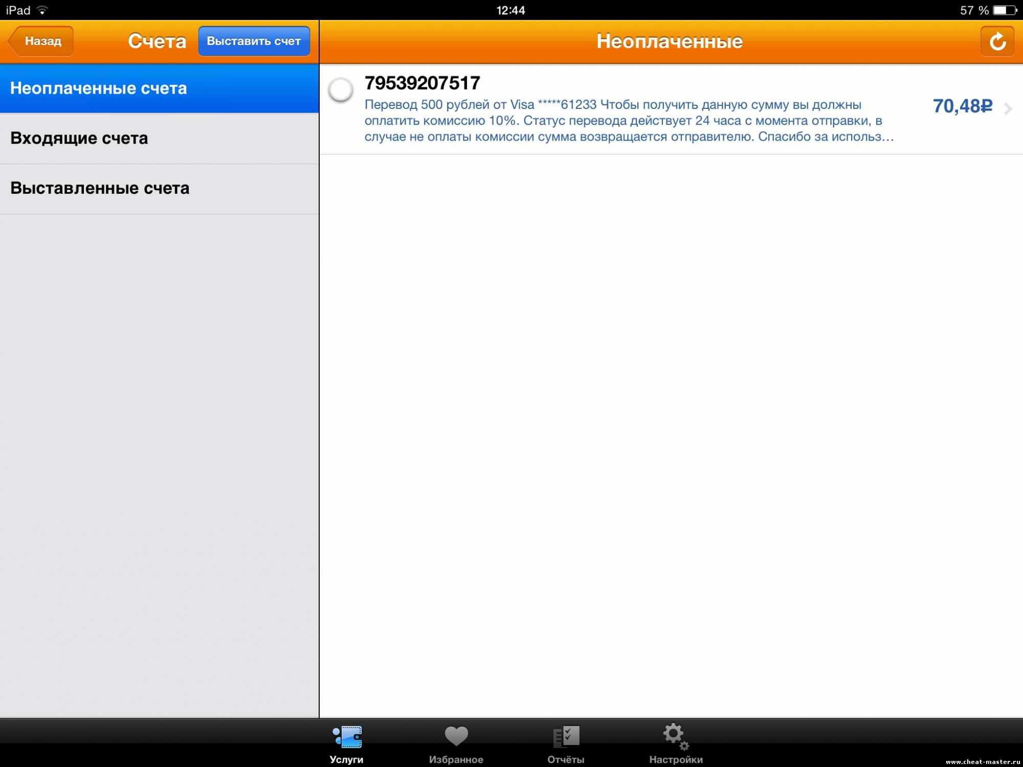 15.04.2014 18.03.2014 Оплатить Отменить 50,00 руб. Visa QIWI Wallet 79501279715 _WEB_4458905360 Перевод 500р от MasterCard 9489**** . Чтобы получить данную сумму вы должны оплатить комиссию 10%. Cтатус перевода действует 6 часов с момента отправки,в случае неоплаты комиссии сумма возвращается отправителю. Спасибо за использование нашего сервиса. 15.04.2014 18.03.2014 50,00 евро. Visa QIWI Wallet 79501279715 _WEB_4458904016 Перевод 500р от MasterCard 9489**** . Чтобы получить данную сумму вы должны оплатить комиссию 10%. Cтатус перевода действует 6 часов с момента отправки,в случае неоплаты комиссии сумма возвращается отправителю. Спасибо за использование нашего сервиса.