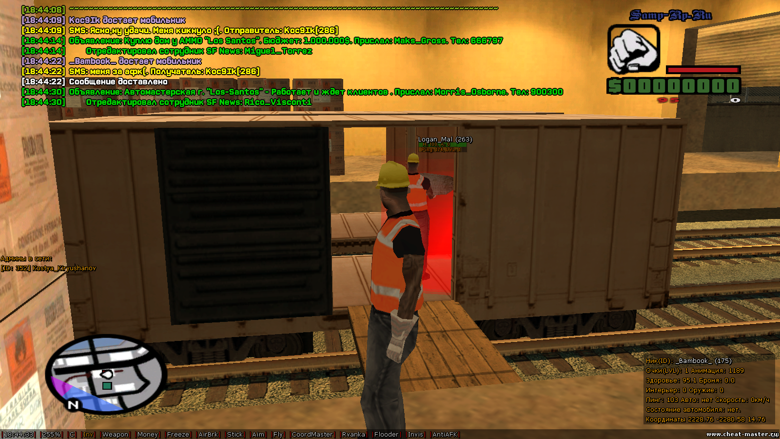 Всем привет. Многих игроков банят за бота грузчика и вы думаете что админы используют читы или вх 1.И так вы как всегда включаете бота грузчика и встаёте под землю или в другое место в моём случае это ринг (в собейте от Мишани) 2.И так вы встали и вы стоите под землёй или где нибудь (я на ринге) 3.У вас показывает что вы стоите на месте и тоскаете мешки. 4.Всё-таки нет,у игроков и админов показывает что вы стоите где брать мешки. 5.Это выглядит вот-так. 6.И так админы для проверки ботов идут на работу грузчика и видят картинку выше. Присмотритесь на ник "Logan_Mal"В переписке он написал что использует собейт от мишани и грузчик от собейта от мишани.