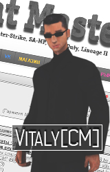 1.Ник : Vitaly[CM] 2.Шрифт : На твой вкус 3.Фон: Форум СМ и скин вузи 4.Ставить ли рамку?: Да 5.Ставить Анимацию?: нет 6.Пожелания: Всего хорошего