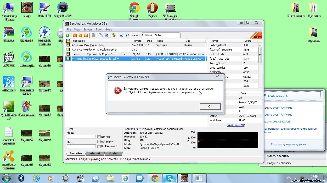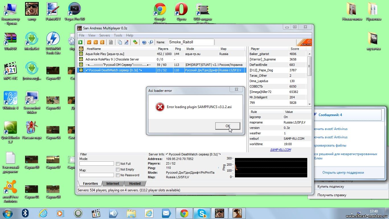 Вообщем устанавливаю SF как тут: http://cheat-master.ru/forum/129-261502-1 . Но вылетает ошибка.Потом вторая ошибка.