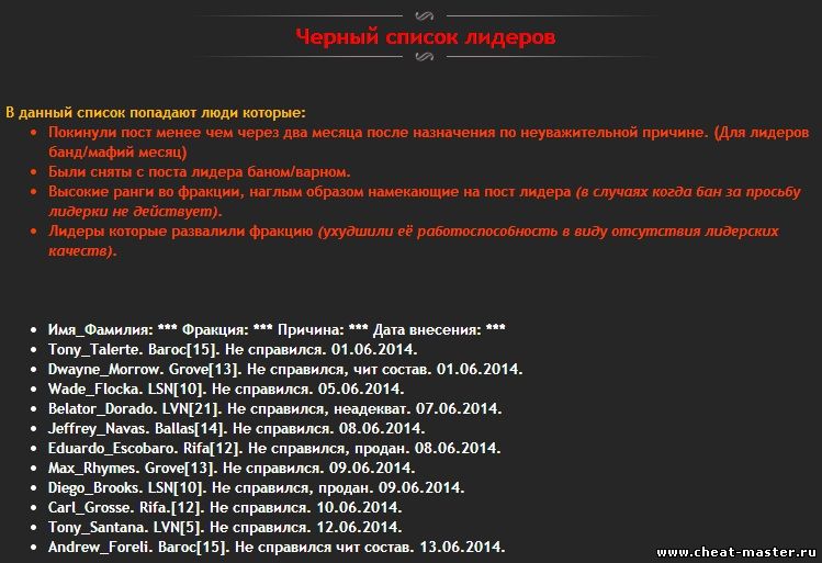 ЧС лидеров за 14.06.2014 - Форум Cheat-Master.ru