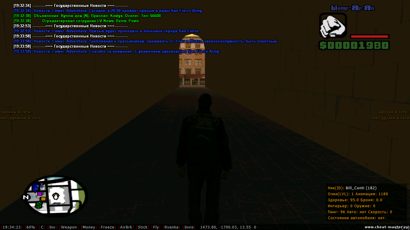 Приветствую, уважаемые читеры. Сегодня, разгуливая на сервере Air Break'ом, случайно напоролся на простенький баг. Сам баг находится, как бы сказать... Внутри мэрии ( не в самом интерьере, а именно на улице - в текстуре здания ) Скрин я прикрепил Не знаю, может, кому-нибудь понадобится для чего-то там... ( для анти-афк, может ) Если баян, удалю