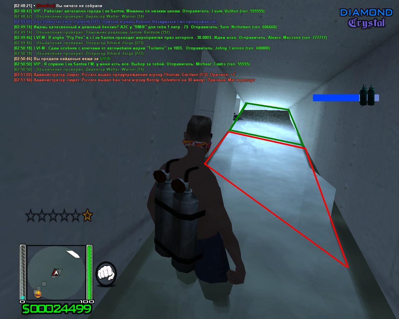 Привет CM. И сейчас я расскажу как же не умирать на водолазах.Всем уже наверное это надоело,когда вы только купили "мешок и балон" и не успели даже донести груз,как умерли! И уходите только в минус!Сам несколько раз я умирал ,но потом же я нашёл как не умирать.Многие говорят это из за "/fpslimit 20" но это не так. Попробую доступно для всех объяснить! Где красным,там всплывать не надо.Там у вас есть шанс 90% что вы умрёте! Далее,где отмечено зелёным,там тоже всплывать не желательно! Там вы тоже можете умереть,но шанс 20-30%.Тогда вопрос - "Где же всплывать?" А всплывать надо вот тут (выделено зелёным) А дальше спокойно плыть не ныряя.И мы не умрём. Всем спасибо,удачи поплавать.Заработайте много денег :3
