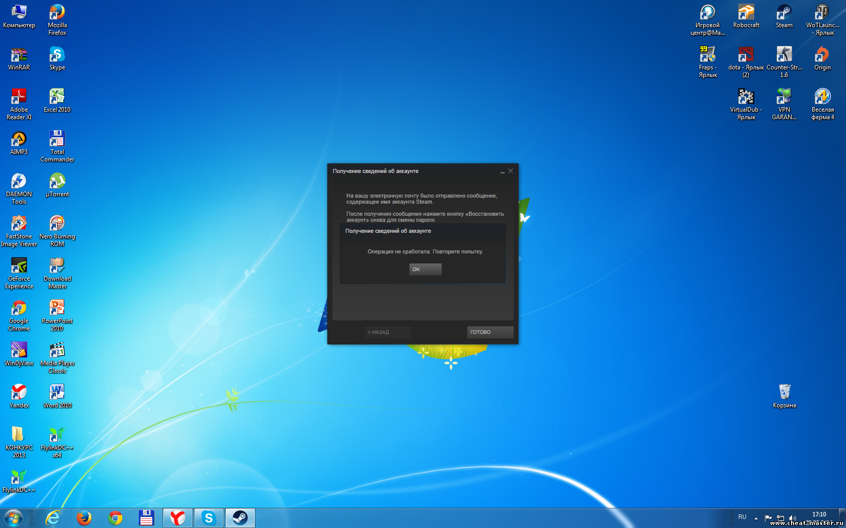 Цитата sergey07 (  ) а как восстановить аккаунт через почту? у меня постоянно ошибки выдаёт