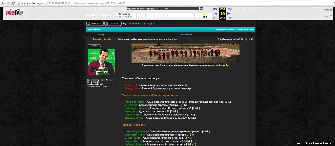 Скрин 2012 года, в разделе "Список администрации". Думаю многие знают про тех людей в спец.админах, но я его вам предоставлю.