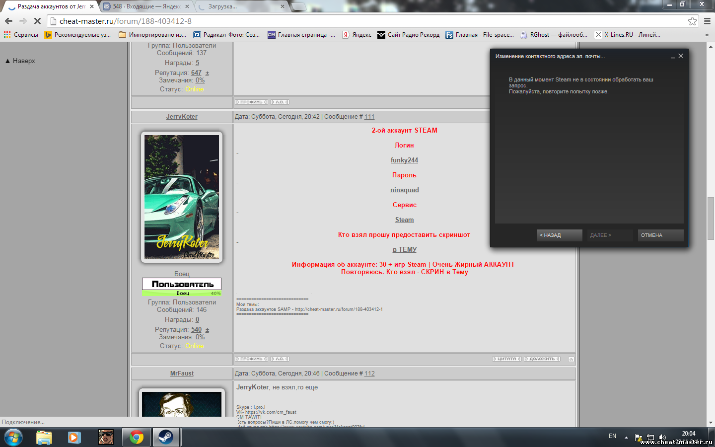 Раздача аккаунтов от JerryKoter - Страница 8 - Форум Cheat-Master.ru