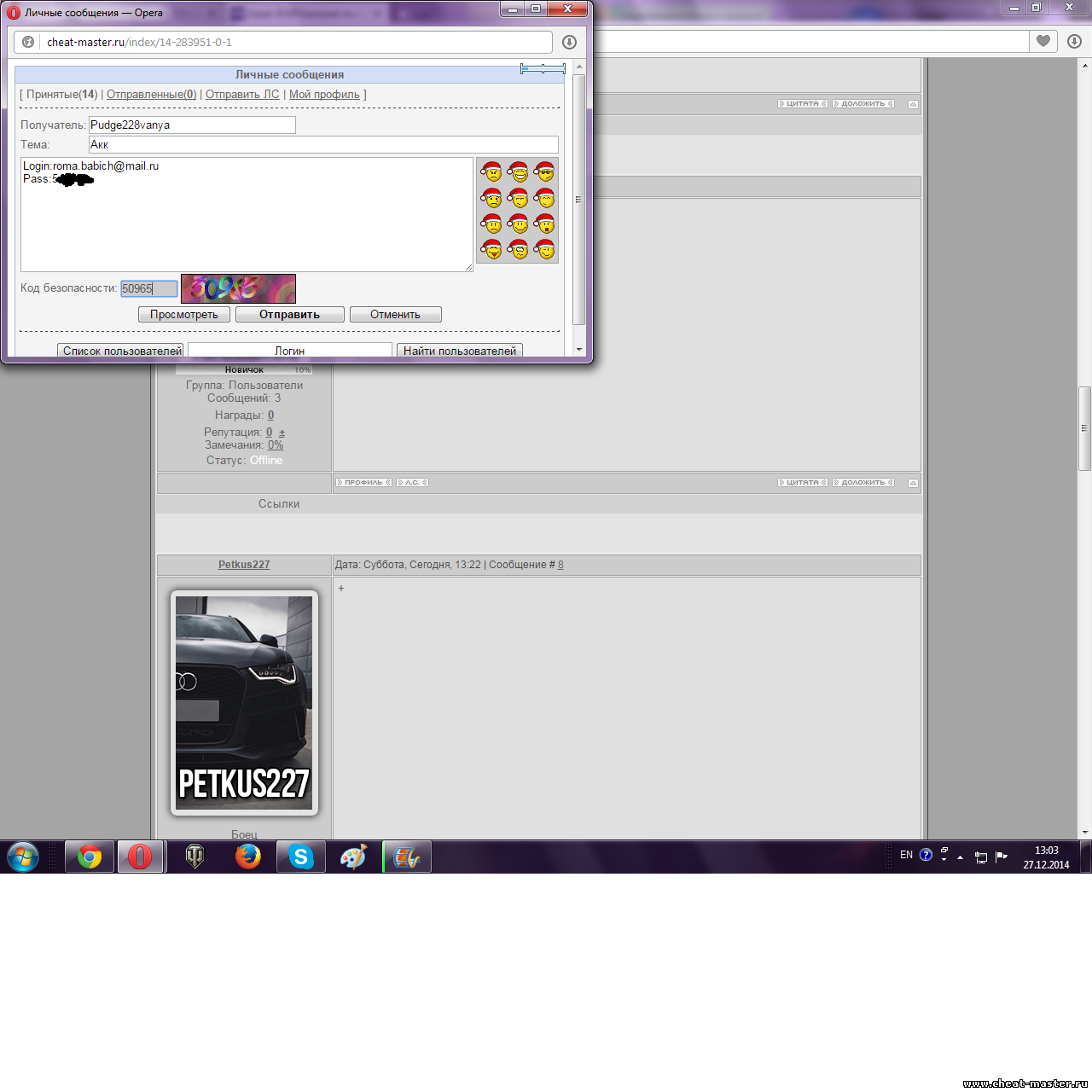 Раздача аккаунтов - http://cheat-master.ru/forum/188-357315-1 [CLOSED] [ Тема удалена ]