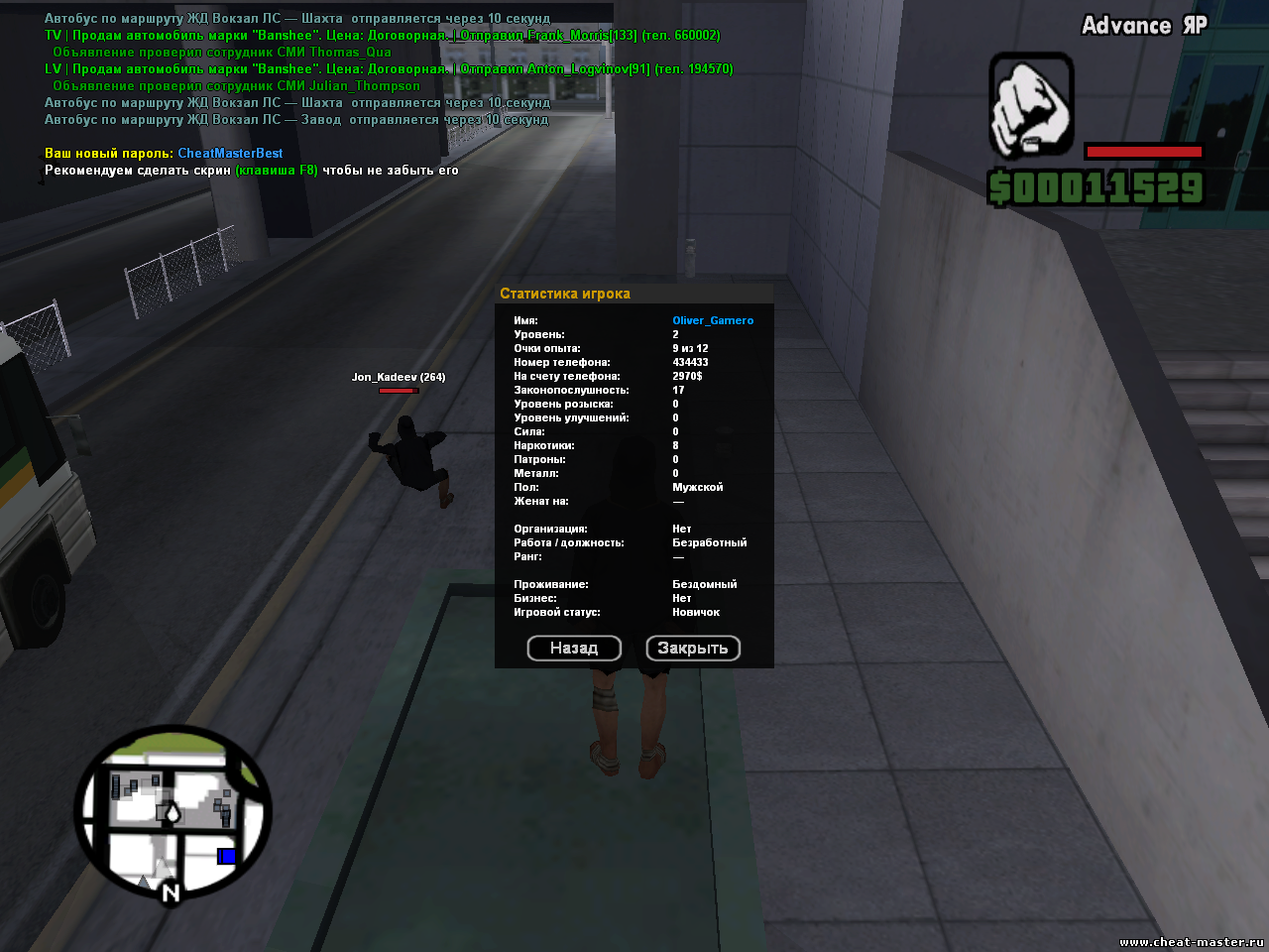 ARP Сервер: 6 | White Ник: Oliver_Gamero Пароль: CheatMasterBest Описание 2 lvl, на руках 11к, симка формата xzxxzz