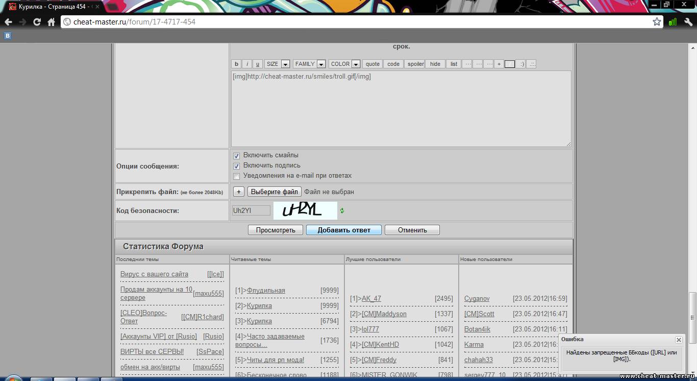 Курилка является темой, где пользователи портала Cheat-Master могут свободно общаться на любые общественные темы, не нарушая правил курилки.