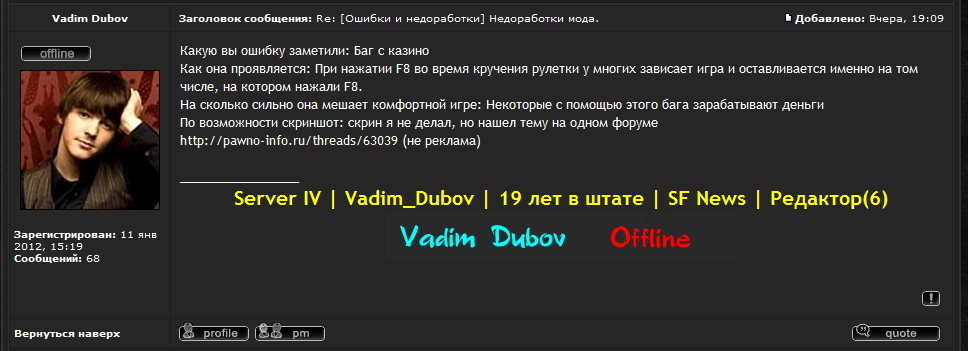 Шелби, мне одному на баги пох? =3 ну если только не реальные баги на вирты, которые я бы потом продавал...