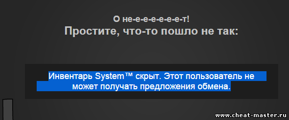 Цитата System™ (  ) BomjMC, Кому ты чешешь? Не пришло ничего, минус за обман "Инвентарь System™ скрыт. Этот пользователь не может получать предложения обмена". вчерашний скрин, за клевету -rep тебе :3 еще 3 кейса раздал тем,кто вчера из-за проблем стиме не получил их :3