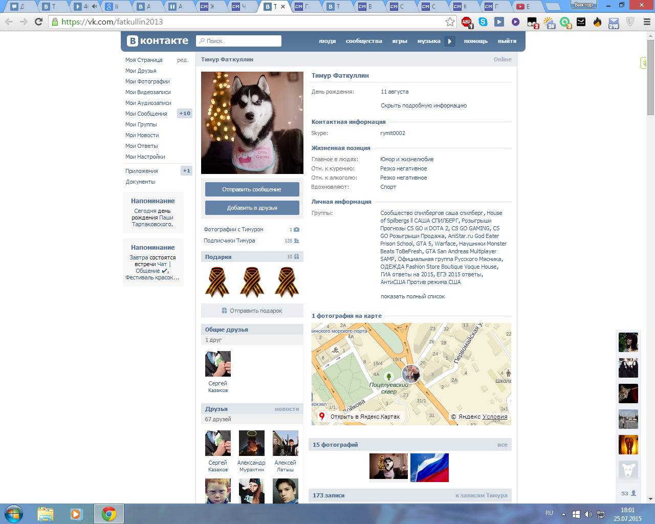 Его вк и скайп находятся в чс :/