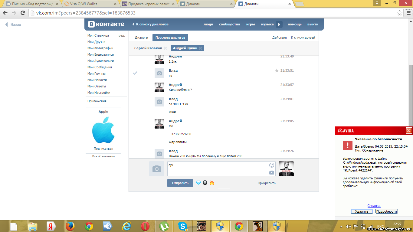 я влад шаповалов в вк заблочил ты перевёл 400руб на киви и заблокировал он а где 1.3кк Добавлено (04.08.2015, 21:31) --------------------------------------------- что теперь скажеш скрин вон