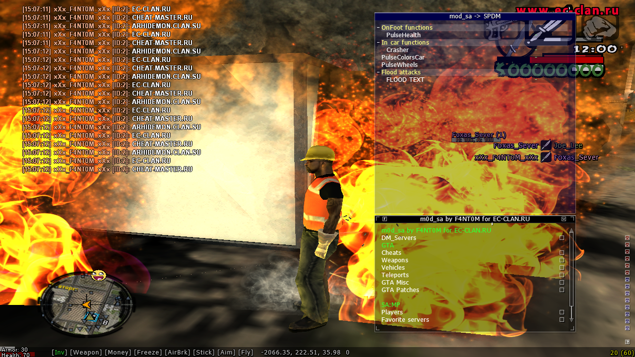 Добрый день, CM Сегодня я выложу свою первую разработку в сфере mod_sa C++ (то что я сделал за утро) Строго прошу не судить, т.к в С++ 1 день Функции s0beita: • Pulse Health and Armor • Pulse in Car (Пульсатор цветов, шин) • Crasher • Flooder СкринШот s0beit'a: