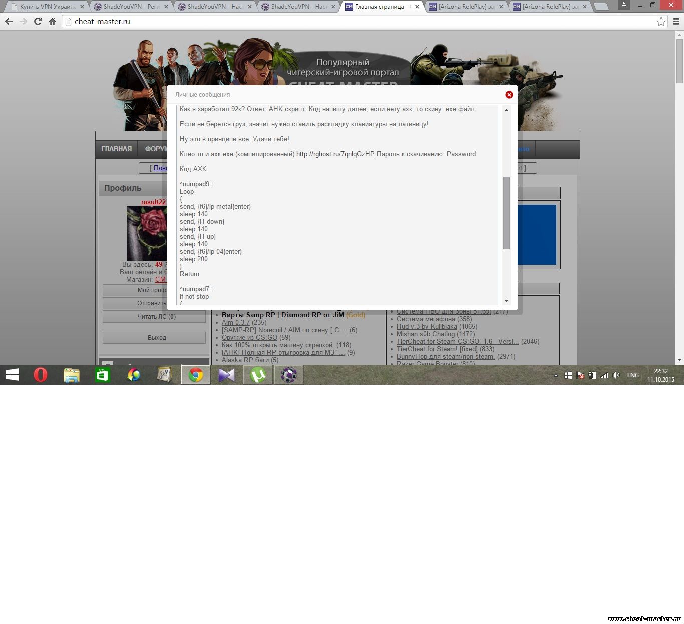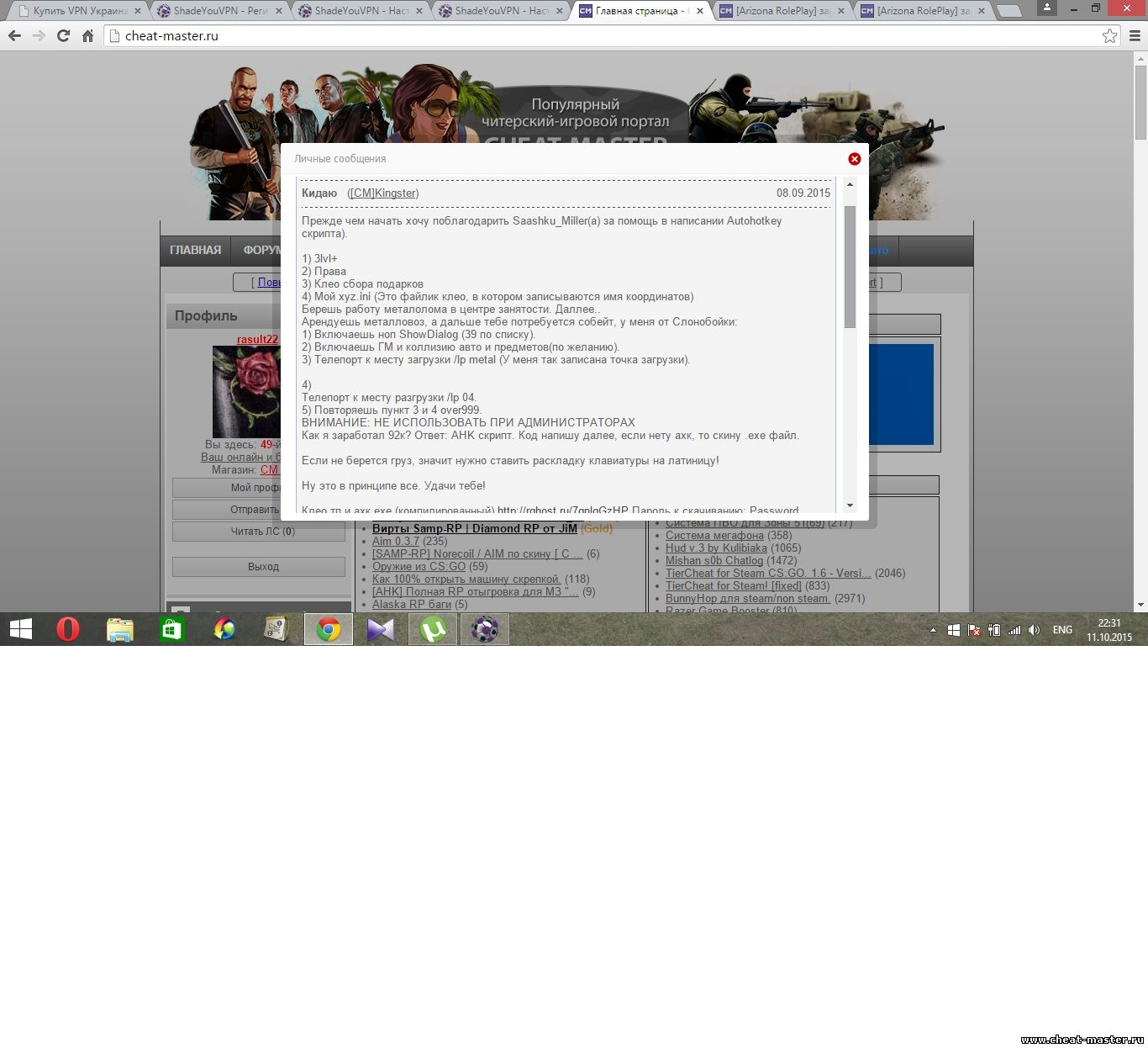Мои темы. http://cheat-master.ru/forum/208-526180-1 http://cheat-master.ru/forum/188-526646-1