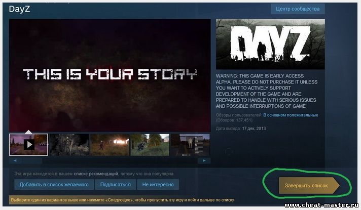 4. Пролистав полный список рекомендуемых игр, жмем "Завершить список"