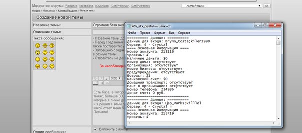 Есть база, в котором очень очень много аккаунтов, именно оттуда я раздавал вам аккаунты в прошлых темах, больше 100 аккаунтов я отдал, осталось примерно 300 аккаунтов валидных, один из них там есть которые я лично для себя хранил, там было 5кк, только забыл ник, так что мне это база больше не нужна, и я решил с вами поделиться, но что бы было все по честному, вы должны ответить на 1 простой вопрос, какой ответ меня больше всего удовлетворит, тому и отдам. Погнали! Почему я должен отдать именно тебе базу?