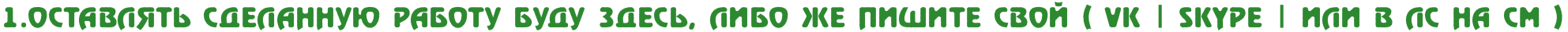 Код [color=blue]Ваш никнейм:[/color] ТЕКСТ [color=blue]Тематика или готовый фон:[/color] ТЕКСТ [color=blue]Текст на картинке:[/color] ТЕКСТ [color=blue]Размер аватарки:[/color] ТЕКСТ [color=blue]Куда нужна сделанная аватарка/шапка[/color] [color=blue]Ссылка на ваш ВК:[/color] ТЕКСТ [color=blue]Примечание:[/color] ТЕКСТ