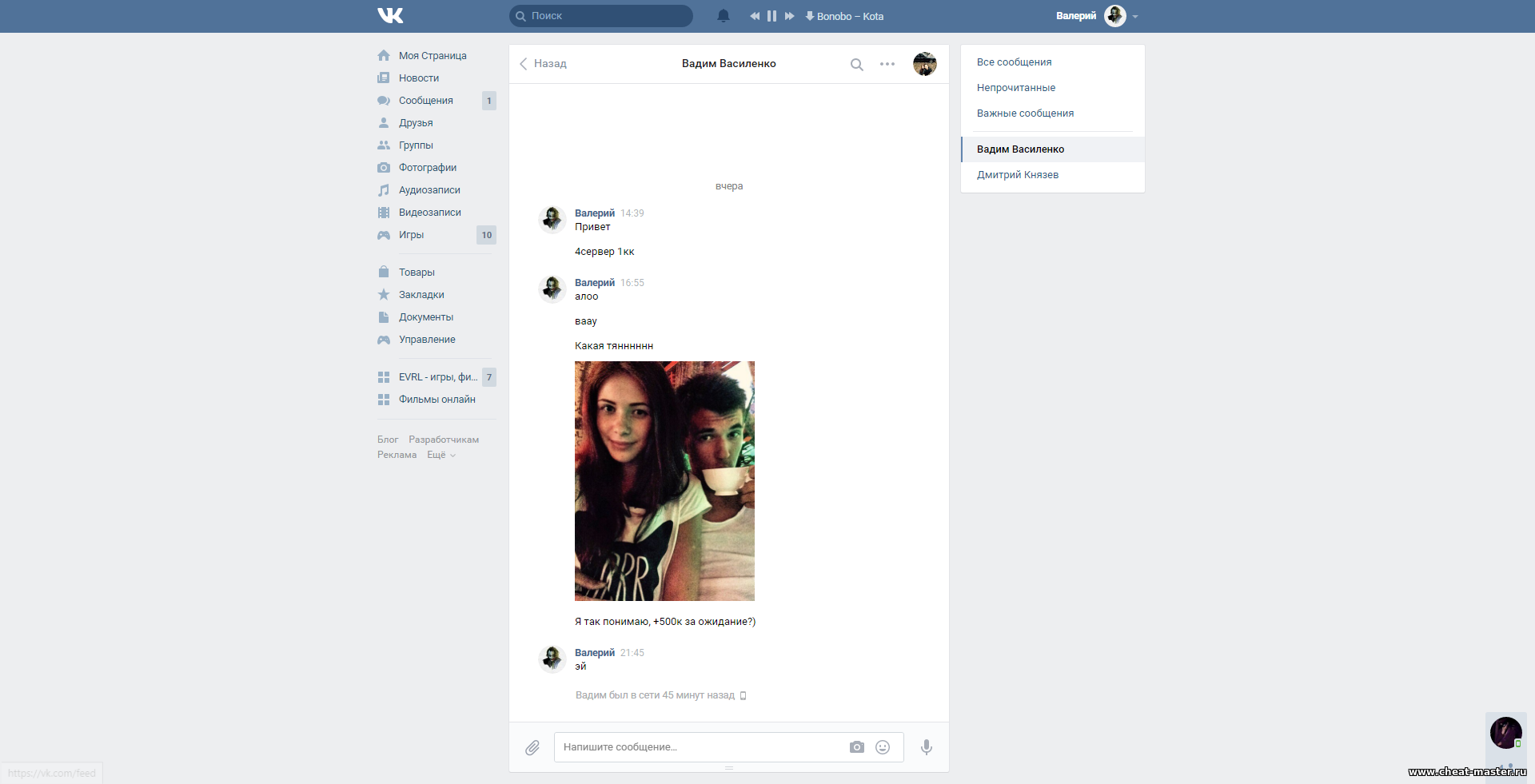 Игнорит вк