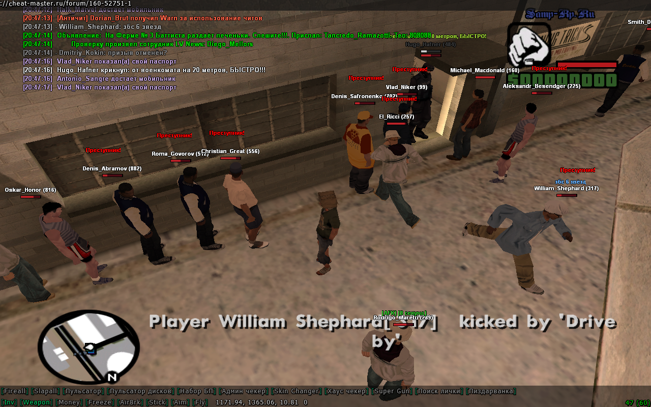 Цитата (|CM|Spider) .Можно разводить на дом например у вас есть аккаунт в ФБР или в ПД и в банде да еще имея дом в гетто Находим покупателя...заранее даем звезды покупателю этим клео скриптом чтобы не спалить свой аккаунт в ПД или ФБР Далее продаем дом потом грабим и убиваем этого человека безпалевно с ФБР или ПД и он сидит в тюрьме главное его убить пока он не положил на счет После пэйдэй покупаем дом по госсу Как бы в гетто ты не сможешь посадить чувака...даже надеть наручники или /tazer