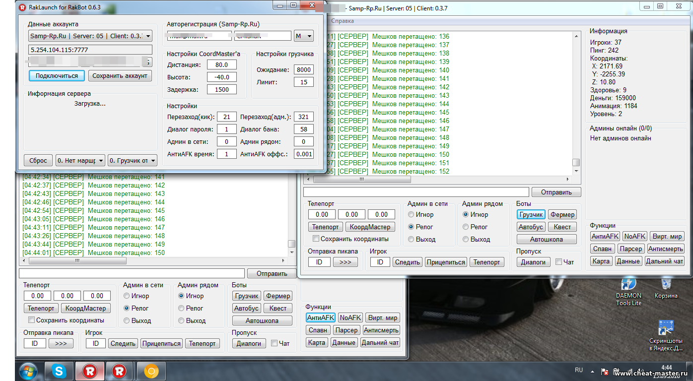 Проблема заключается с RaKBot. На работе грузчик я выставил значения: Ожидание: 8000, Лимит: 15. А иногда лимит сбивается и он делает много мешков, например на 100-200. И я не знаю как забрать зарплату с этих мешков. Мне приходится перезапускать бота. Если знаете решение подскажите пожалуйста. Буду очень благодарен!!!