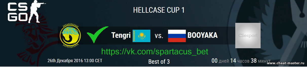 1. Tengri vs BOOYAKAНе прошёл, с таким кэфом BOOYAKA вырывают себе победу 16-14 на третьей карте, возможно вылет и замена 5 игрока Tengri, своё сделала.