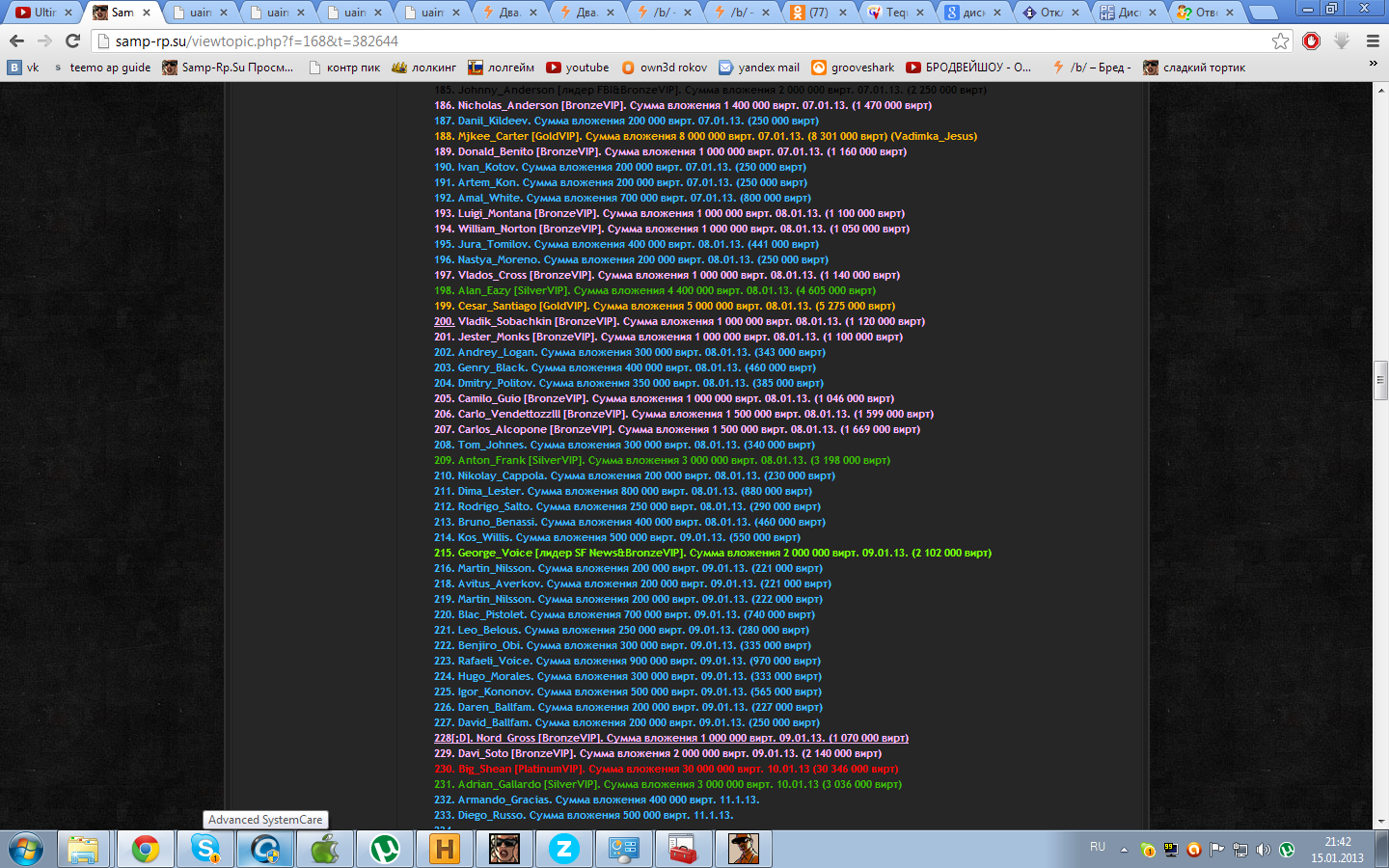 Я являюсь главой Millionaire's Farm, суть проекта: Люди вкладывают в якобы казино, где якобы агенты играют и выигрывают им деньги. Вложилось 280 человек, из них 2 админа, десяток лидеров, денег собрано около 2 миллиардов. Пруфы выдавать никому и нигде не буду, могу дать скрины как мне передавали деньги админы и не только.