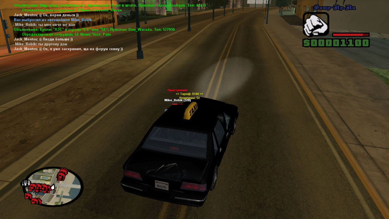 Ну, значит, играю я на Самп-рп, решил сдать на права, отдаю какому-то бомжу 500 вирт, он пишет что я ничего ему не давал и т.п И тут он хочет выкинуть меня из машины Но поскольку у меня залогало, случилось ЭТО : Дубль 1. Он не смог меня выкинуть, и стал ездить вокруг респы Ну вообщем, я его припугнул что ща его забанят, он вернул деньги, яростно стал меня обсирать, и я оставил его