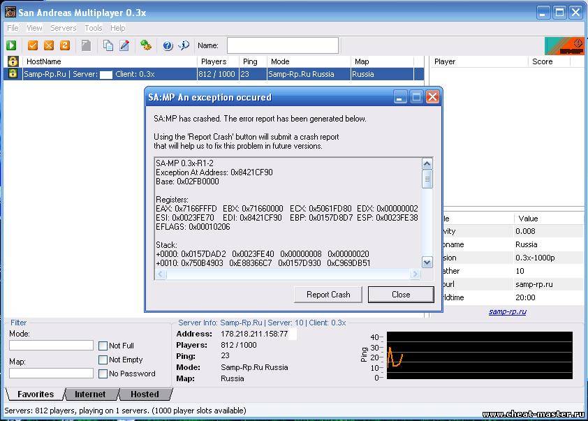SA-MP 0.3x-R1-2 Exception At Address: 0x00746929 Base: 0x02230000
