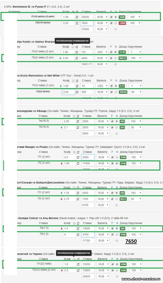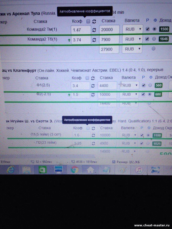 Цитата Saibot (  ) Вся инфа по вилкам есть в свободном доступе. Полно софта и сайтов которые вычисляют вылки, в которых подписка стоит копейки. Чему конкретно ты научишь за пятак? Обучение чему? Добавлено (23.02.2018, 08:42) --------------------------------------------- И банкролл нужен 150к хотя бы для адекватного профита