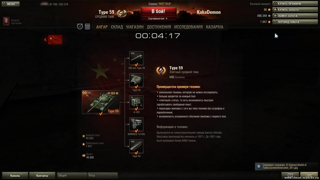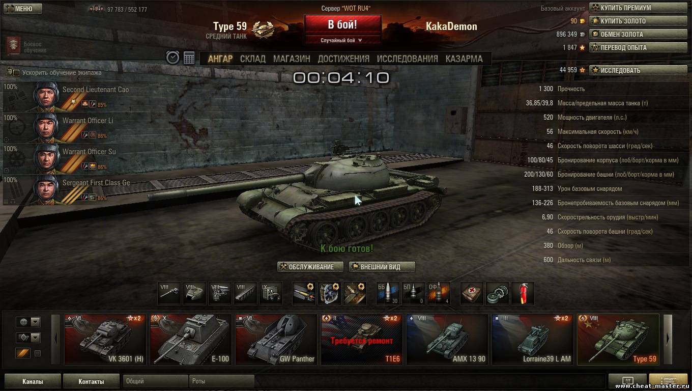 Ошибаешься мажор Type 58 - это да, обычный китайский танк. а Type 59 это премиум танк. Он продавался за 1.300 рублей. Далее, т.к. его начали все покупать из-за его пробиваемости,рикошетности и брони, а тогда Китайцев не было, спрос был на них велик. Каждый заядлый задрот имел этот танк. Даже я, но я выиграл его в закрытом Бета-тесте(был тестером). и в бою этих Типов 59 было штук 9-10. Варгейминг не стал переделывать систему входа в бой, а просто убрал его из продаж. В бою сейчас в среднем 2-4 Типа 59. Вот такая история, я гамаю в танки с того момента как их выпустили в "свет" вот еще для убедительности тебе скриншот.