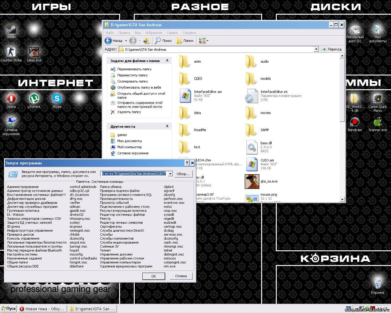 На днях я наткнулся на эту тему: http://samp-rp.su/viewtopic.php?f=108&t=470704 Ну, я так понял, что админы решили новым способом "вычеслять" читера. Как говорится в третьем законе Ньютона: "На каждое действие есть противодействие". В этой теме я расскажу вам, как можно скрыть папку или файлы читерского характера. Заходим в Пуск > Выполнть, и вписываем в строку: attrib +h +r +s "D:\Тут вы указываете путь к папке/файлу" В моём случае это - attrib +h +r +s "D:\games\Gta San Andreas\CLEO". И вуаля, папка исчезла. Для того, чтобы вновь сделать папку видимой необходимо использовать ту команду, только вместо "+" ставить "-".